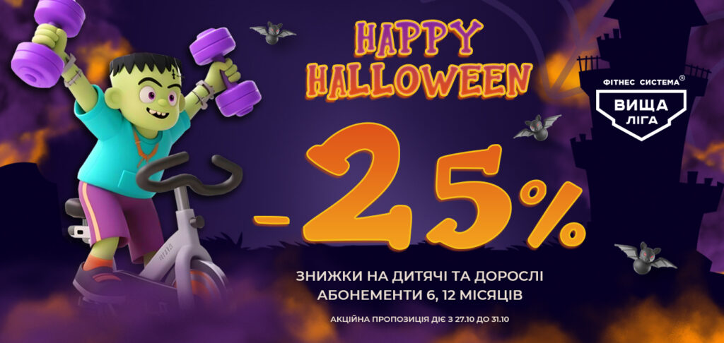 Тільки з 27.10 до 31.10 у фітнес системі «Вища ліга» діє знижка – 25%