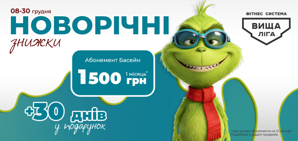 ✅1500 грн* на місяць у фітнес системі «Вища ліга»та ОТРИМУЙ 30 днів у подарунок.